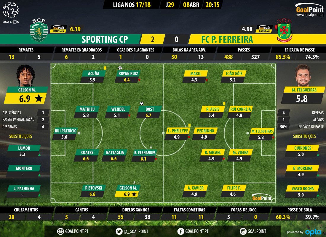 Sporting (conquistou 82% dos pontos disputados nos jogos dirigidos por Bruno Esteves)