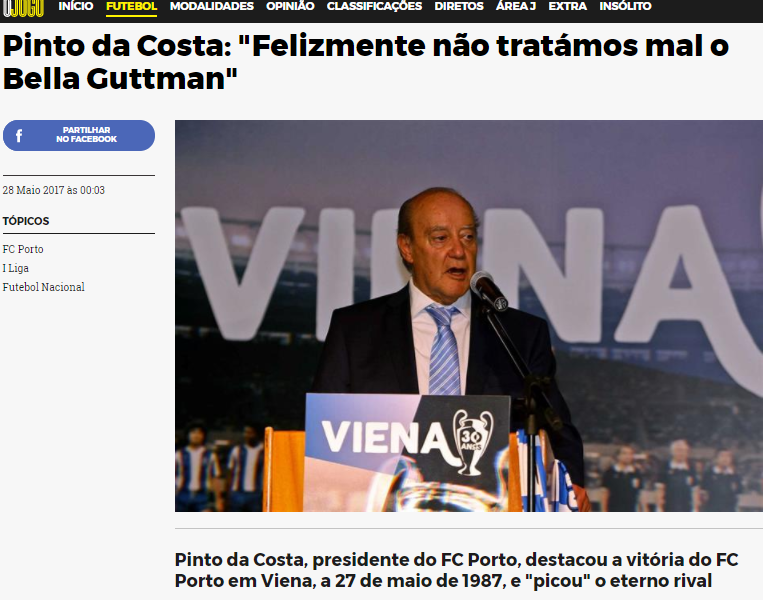 Bastante eufórico pela comemoração dos 30 anos da conquista do 1º trofeu europeu do clube, Pinto da Costa esqueceu as recentes tristezas e lá lançou uma boca a ríval, coisa que já não fazia a muito.
